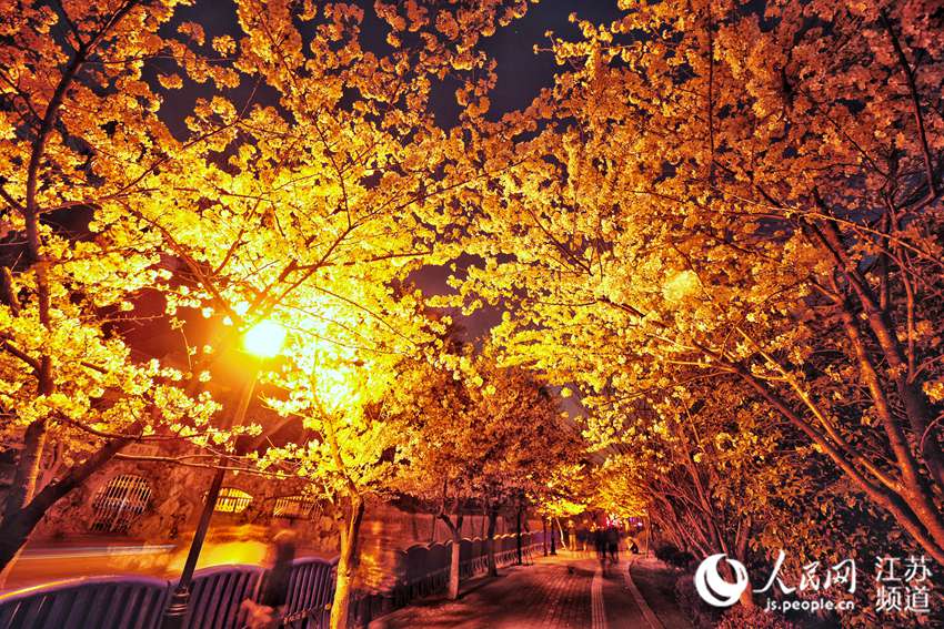 人民網南京3月26日電(馬燾燾)3月中旬開始,在南京市雞鳴寺路,道旁的櫻花隨著坡道蜿蜒而上,錯落有致。慕名而來的游客們爭相拍照,為了保障游客安全和道路秩序,南京交警對這條道路分時段進行了交通管制。太陽落山后,櫻花在燈光的交相輝映下透出別樣的美麗,大量游客駐足于此,流連忘返。此時正是櫻花盛放的季節。